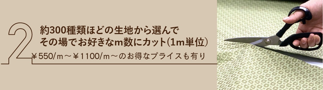 会場ではその場でお好きなm数に、福田織物社員がカットいたします。