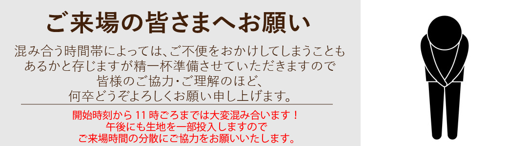 ・特に開始から11時ごろまでが混み合います。人混みや混雑が苦手な方は