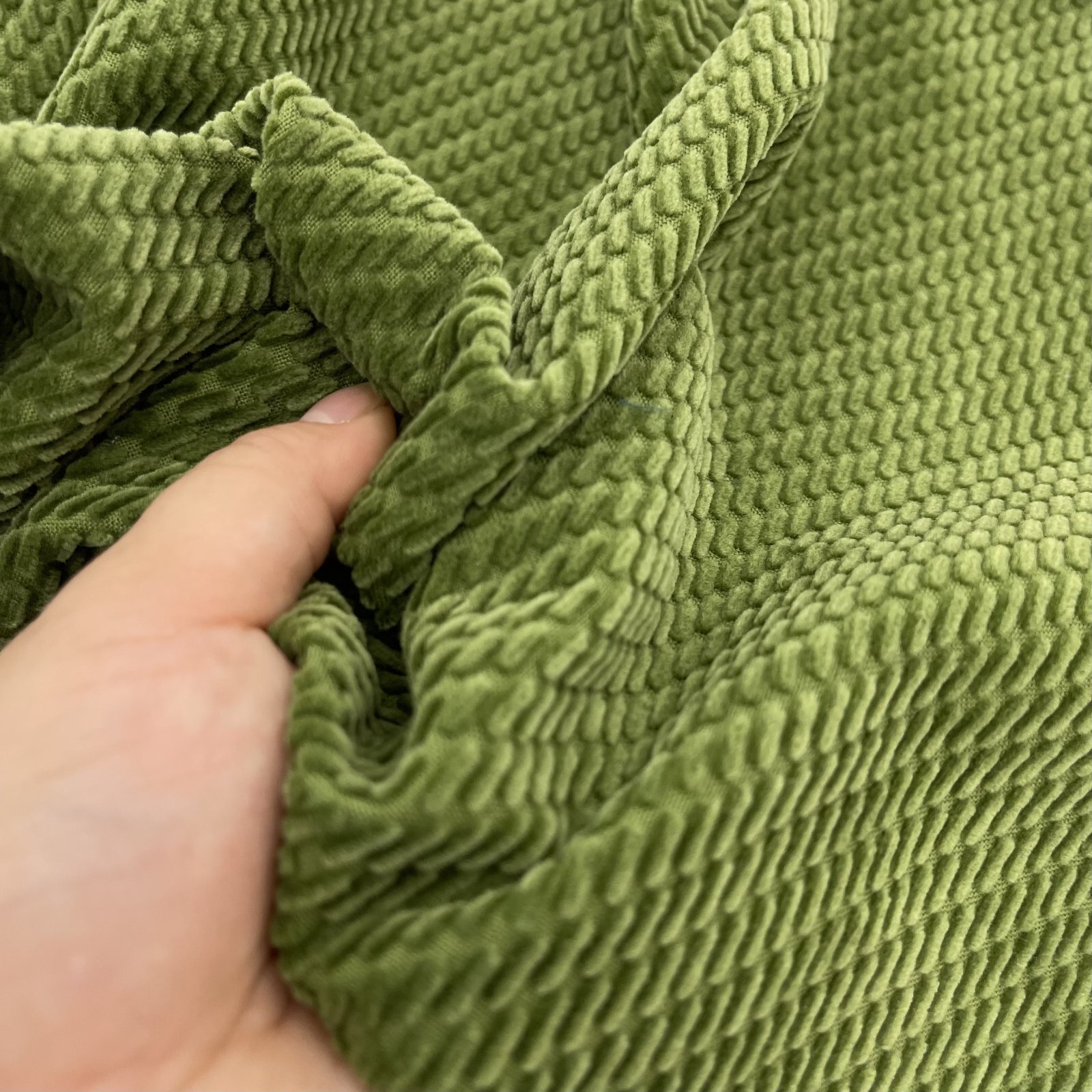 そのため柔らかな風合いですが、立体的なパイルによる柄の生地のため